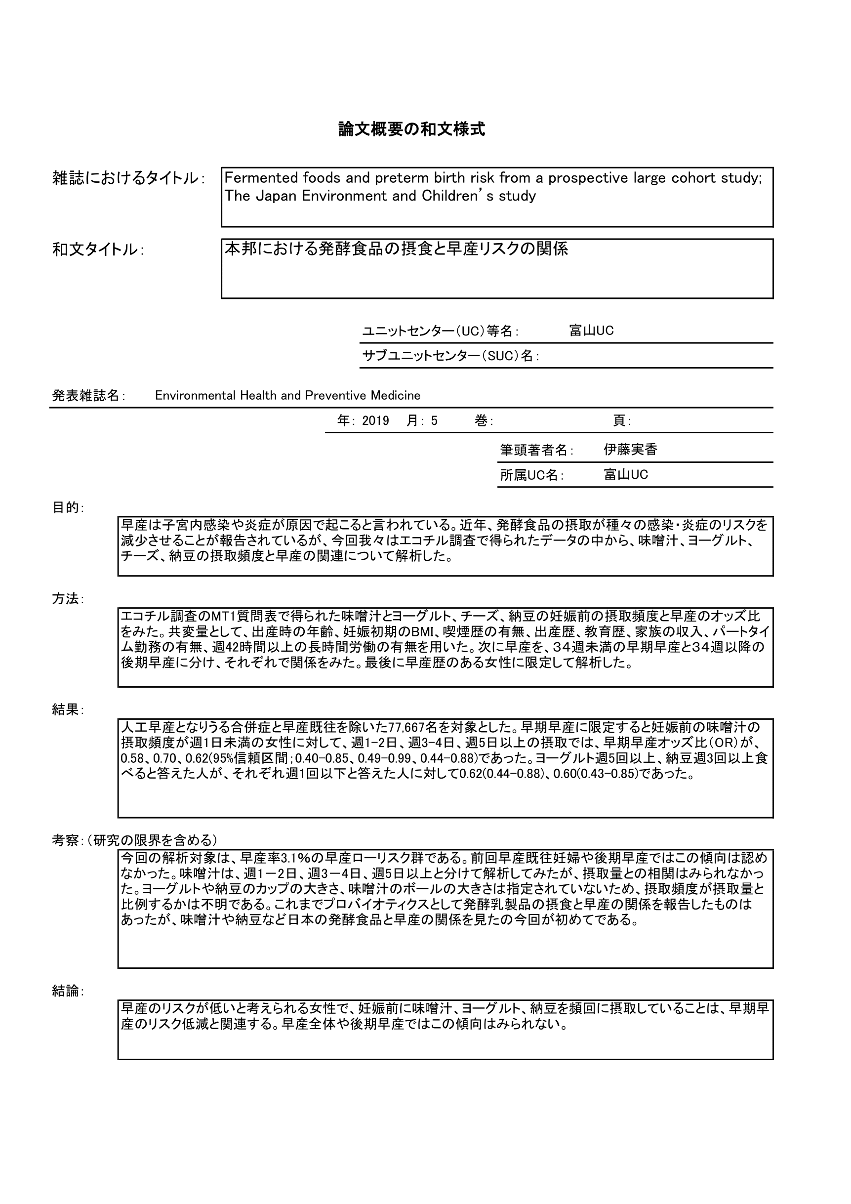 - 妊娠中の発酵食品の摂取と早産との関連を調査