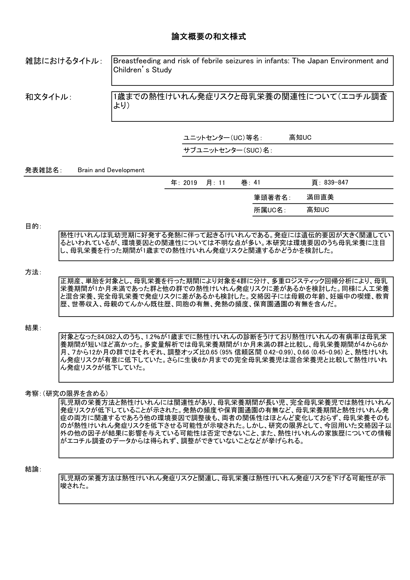 - 母乳栄養の期間と1歳までの熱性けいれん発症との関連を調査