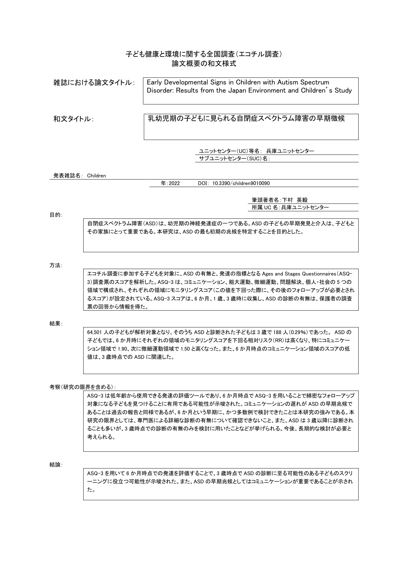 研究成果「エコチル調査で